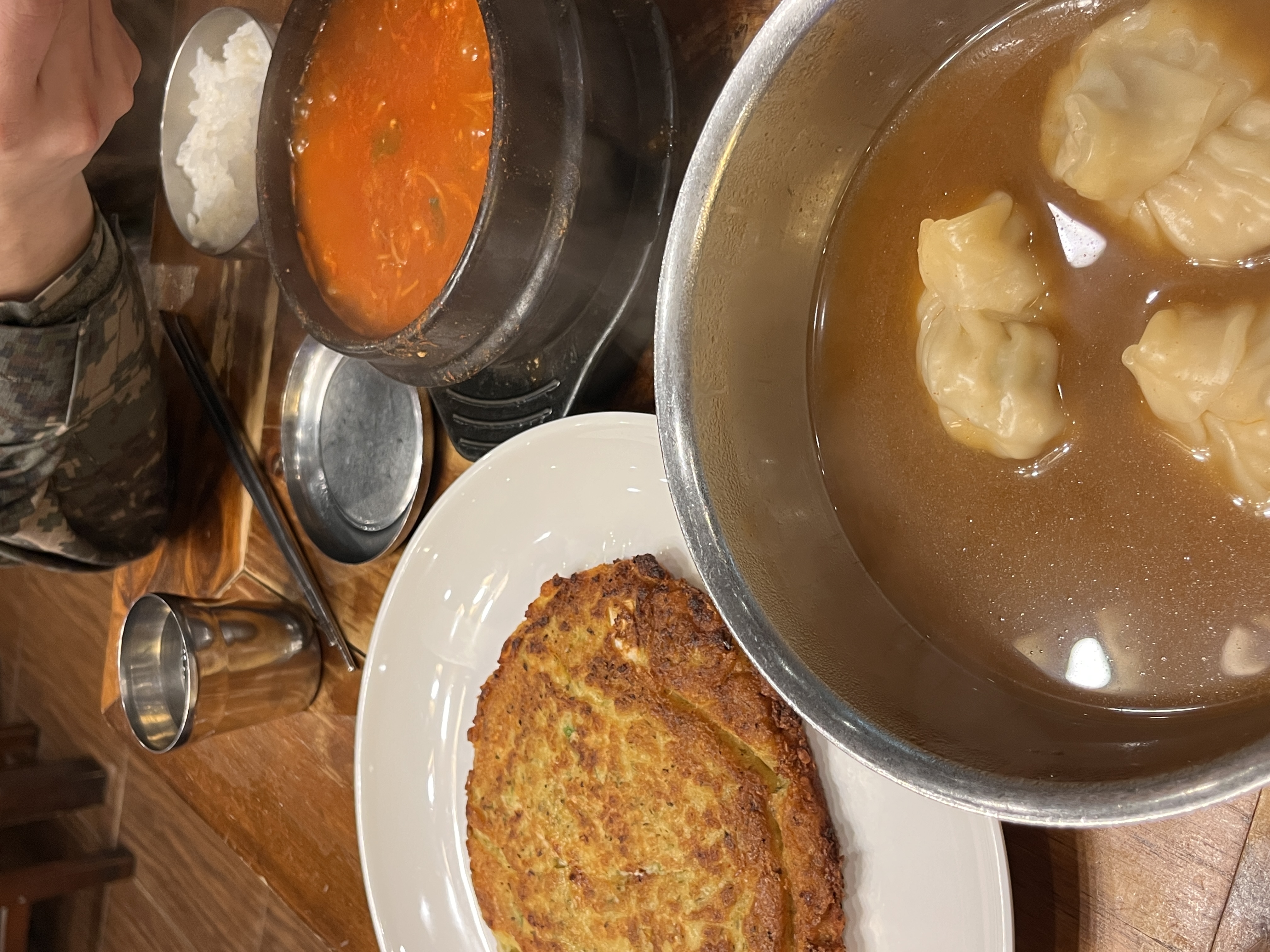 저흰 어랑뚝배기 하나, 손만두국 하나, 녹두빈대떡 이렇게 주문했습니다.