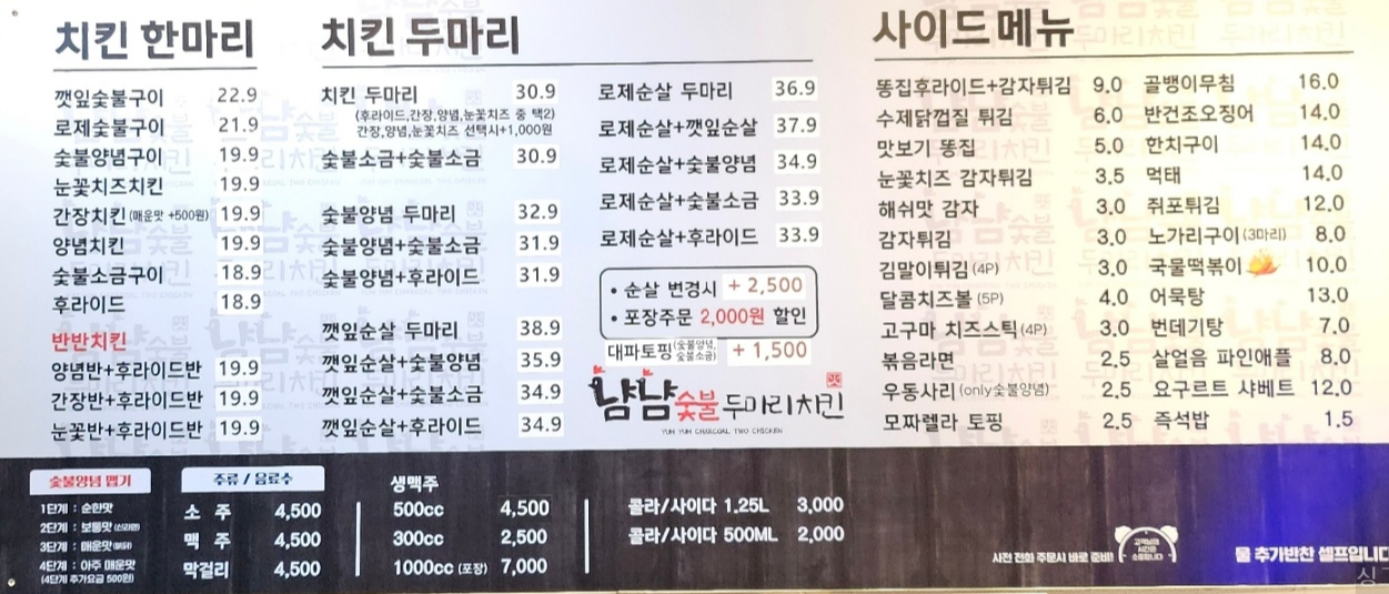 * 냠냠 숯불 두마리 치킨 기본정보