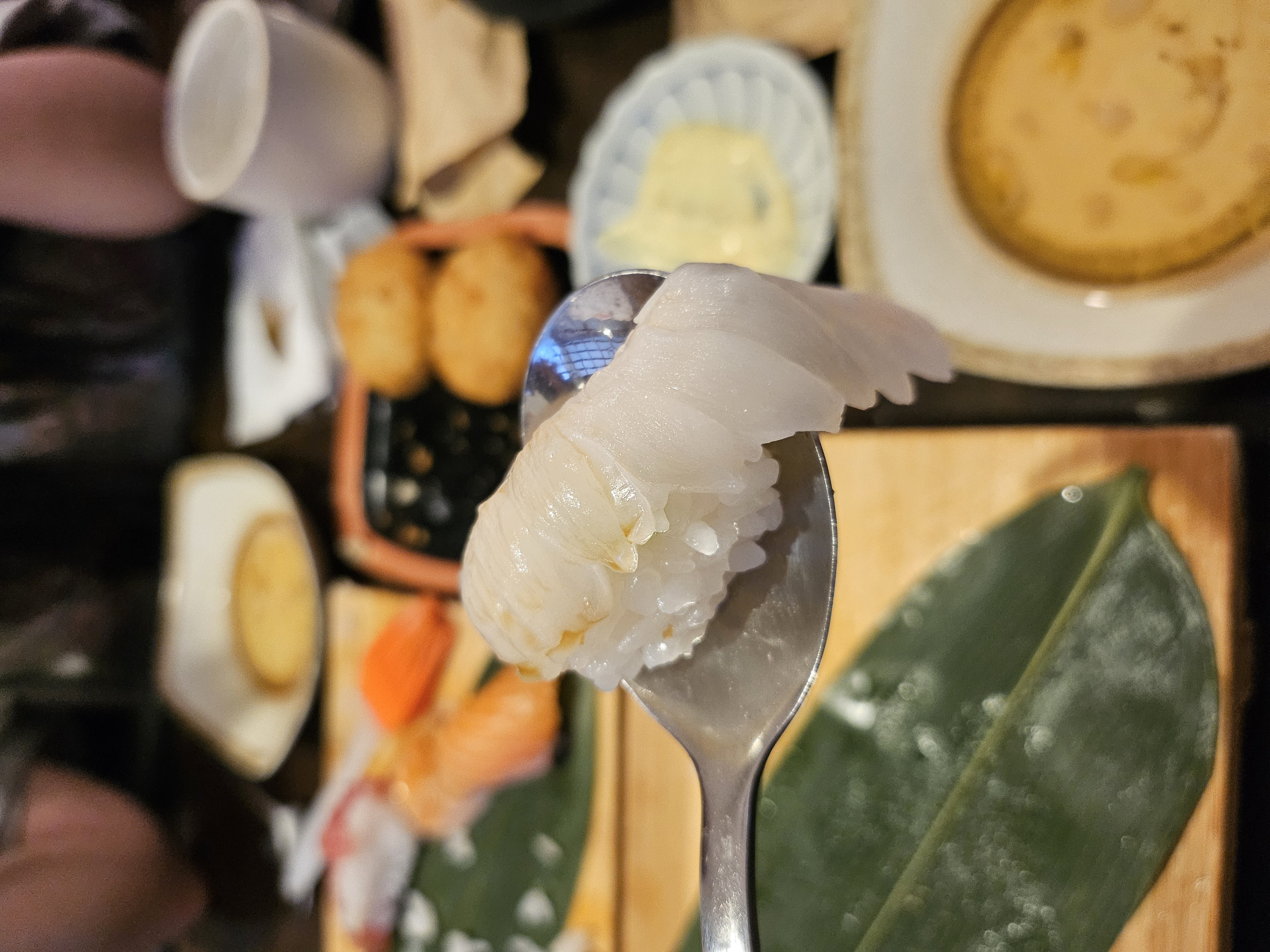 스시야미 맛있게 먹는 팁에도 나와있는데요, 수저 위에 초밥을 올리고 간장을 붓에 묻혀 드시면 됩니다. 존맛,,,ㅠ
