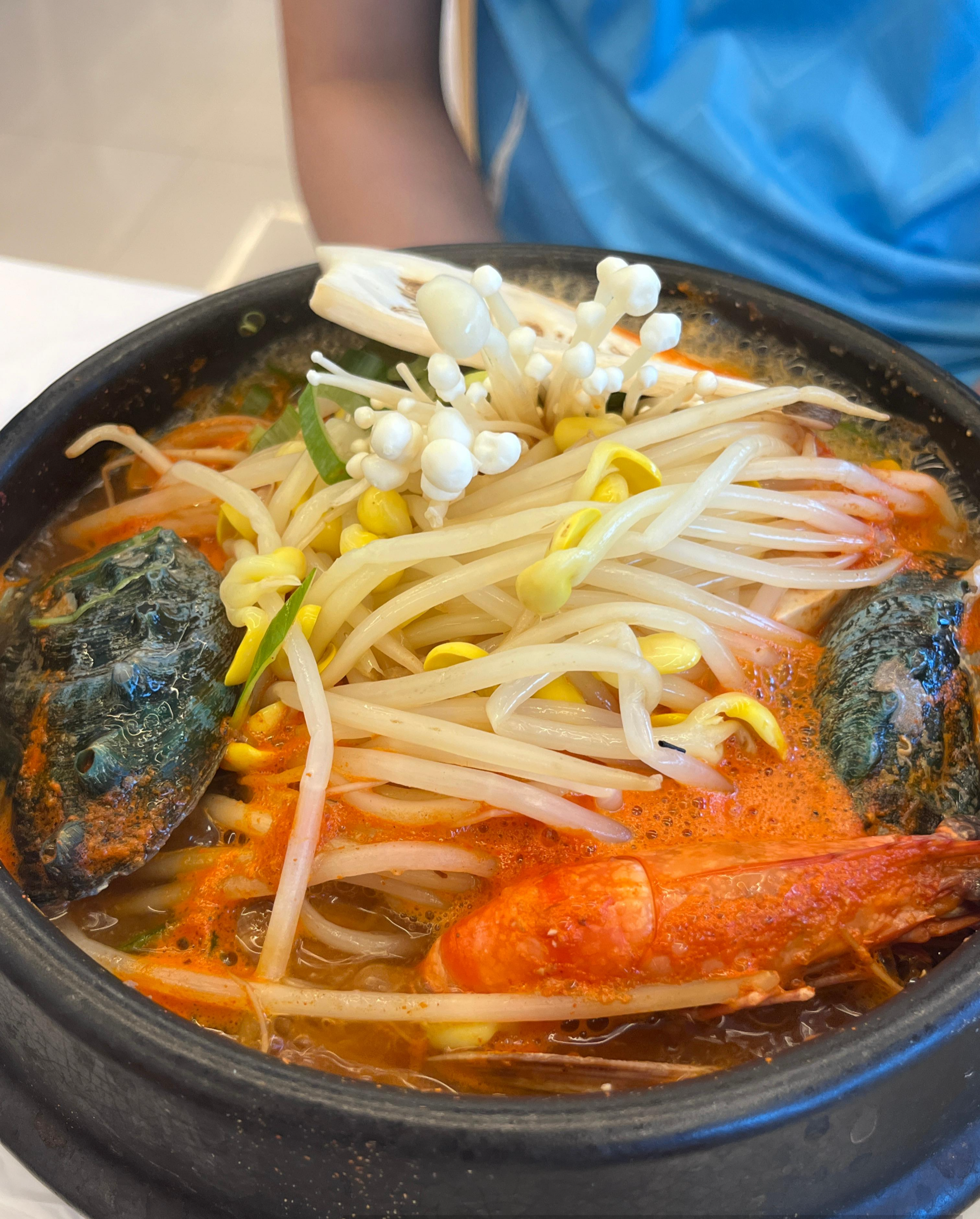 전복해물뚝배기도 맛있었어요! 얼큰하고 안에 오징어, 전복, 새우 등 해산물도 한가득이였습니다.